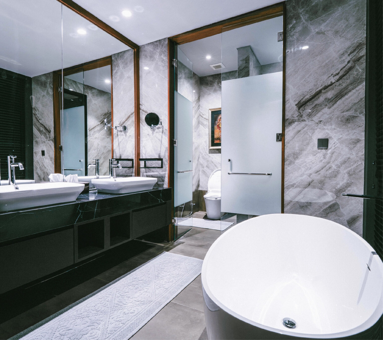 Each of the three spacious bedrooms features its own ensuite bathroom, complete with contemporary finishes and calming design elements to enhance your stay.
