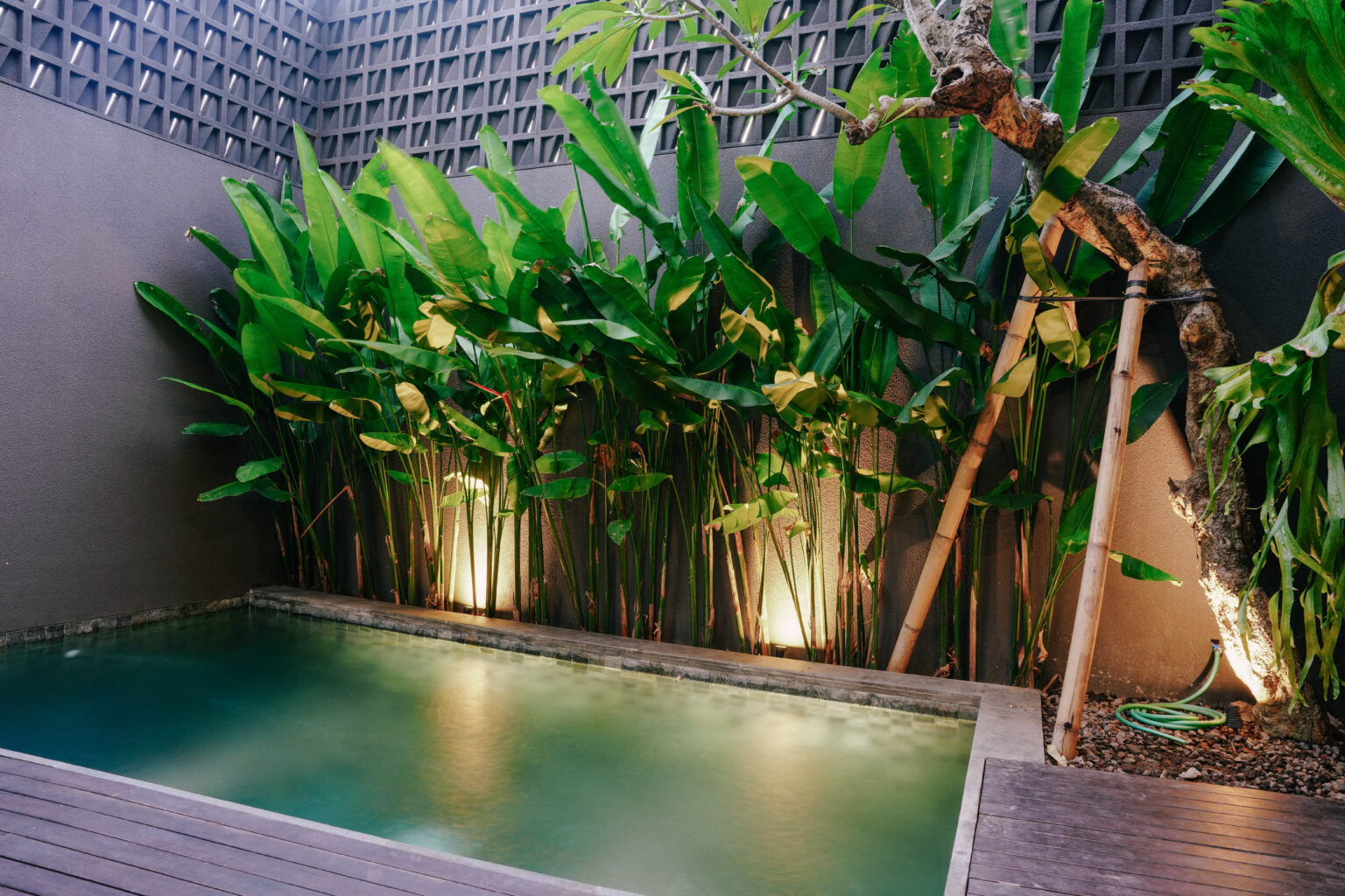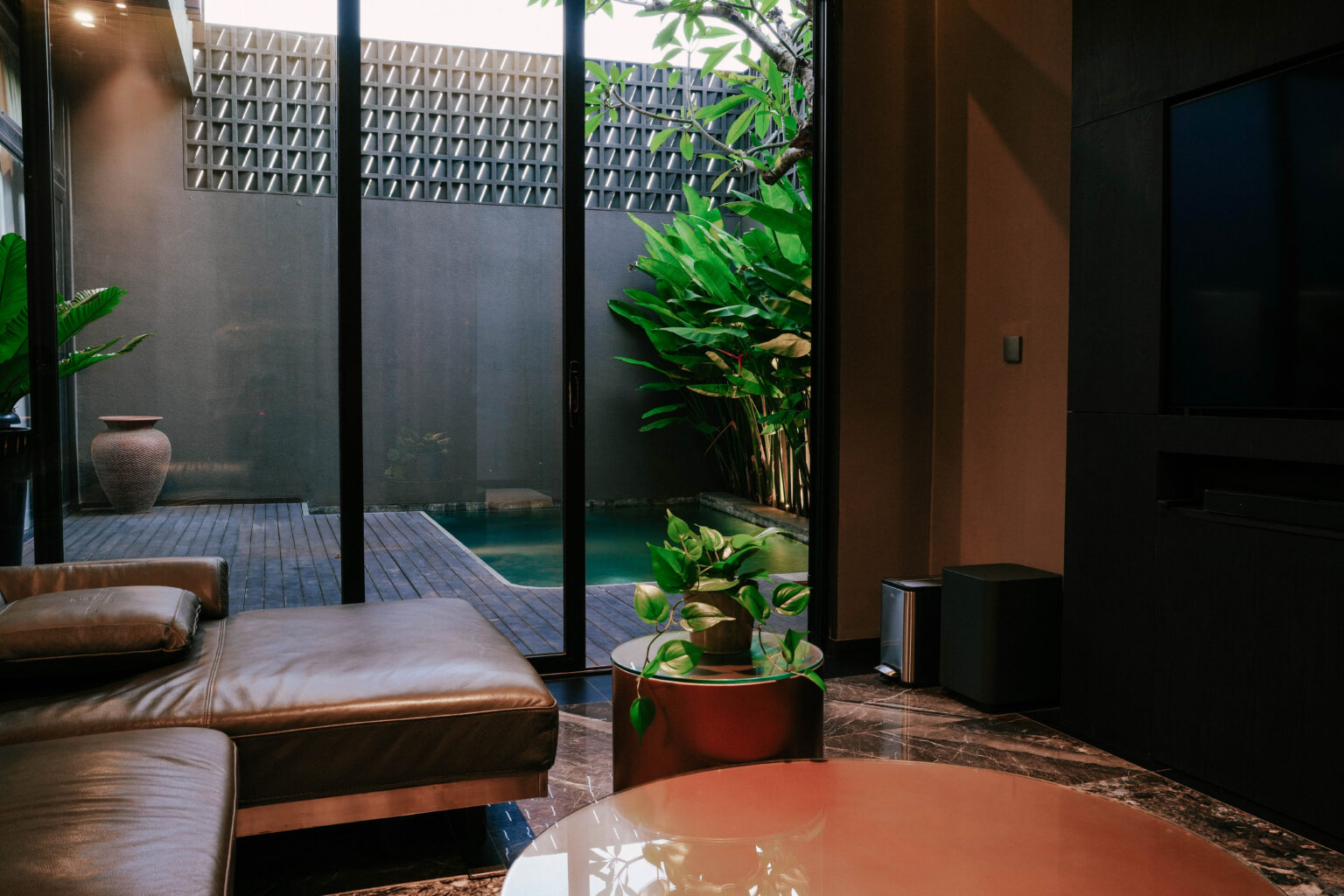 Outside, a private pool surrounded by tropical greenery invites you to relax, refresh, and enjoy peaceful moments throughout the day.