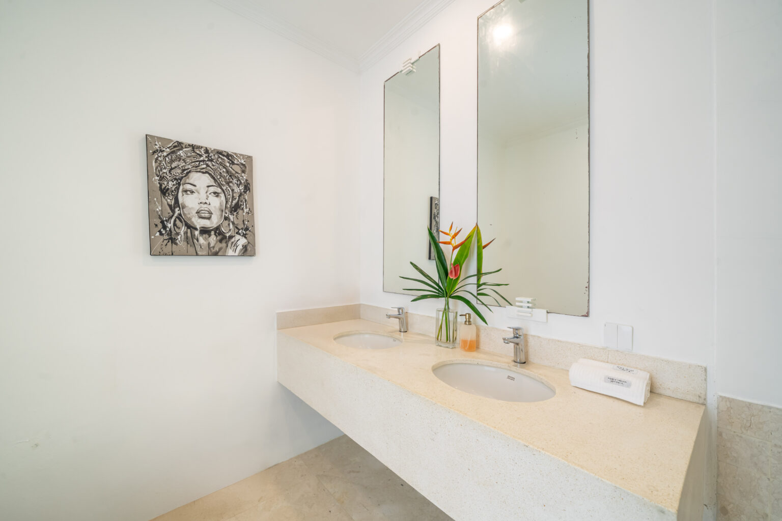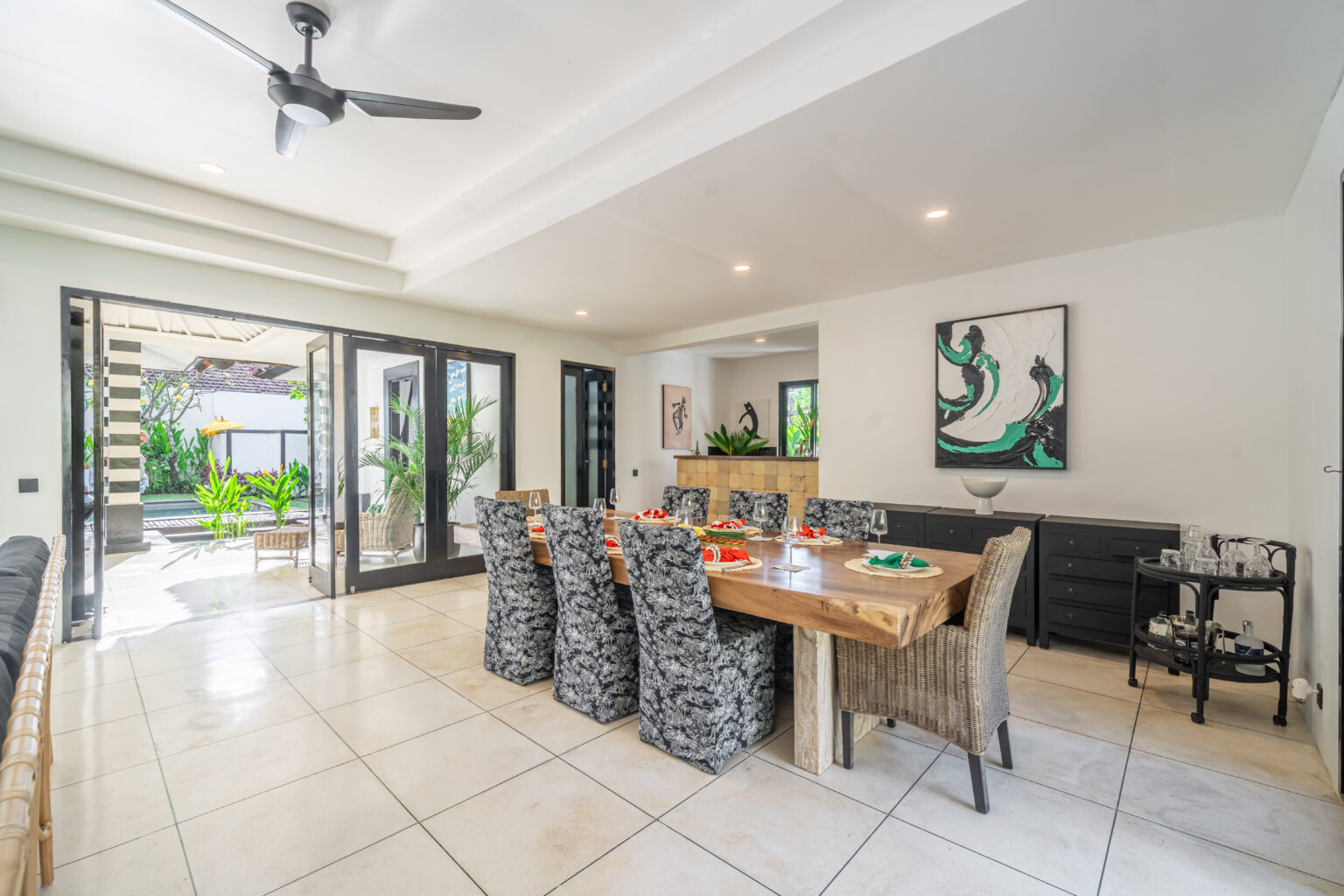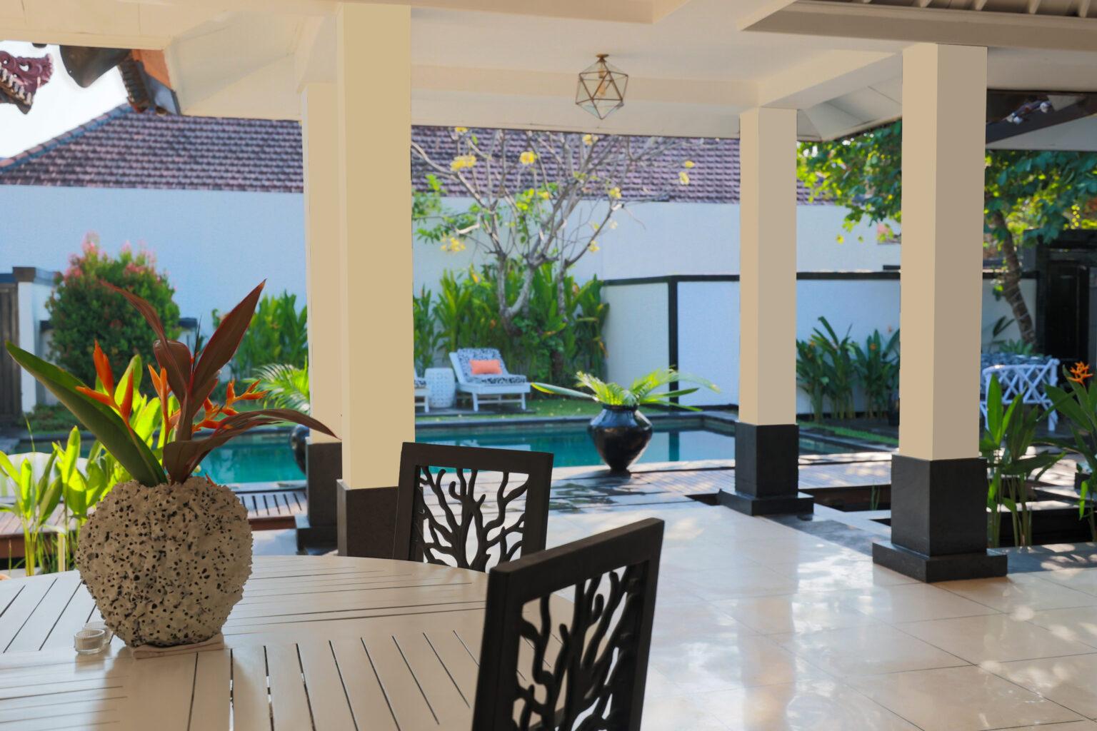 The showstopper is the sun-drenched private pool. Positioned for all-day sunshine, it warms beautifully from morning through late afternoon, creating an inviting swim-ready temperature and a bright, uplifting atmosphere around the deck. Relax on the loungers, take a cooling dip, then drift back to the generous indoor spaces without missing a moment of Bali’s golden light.