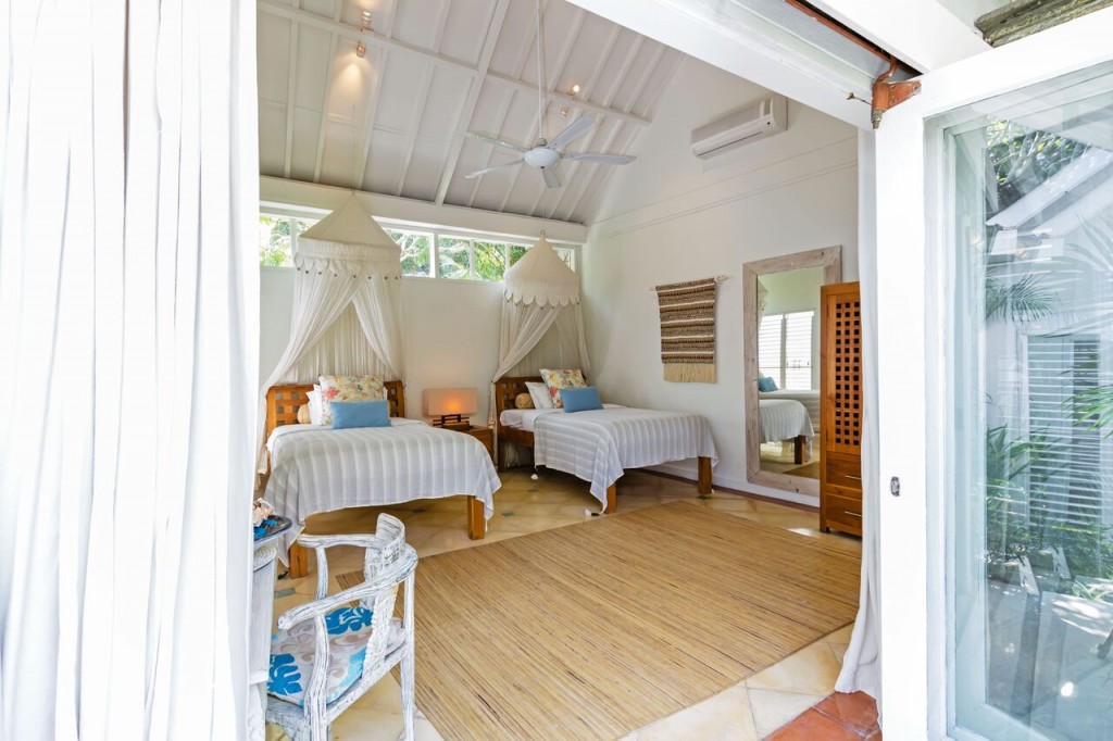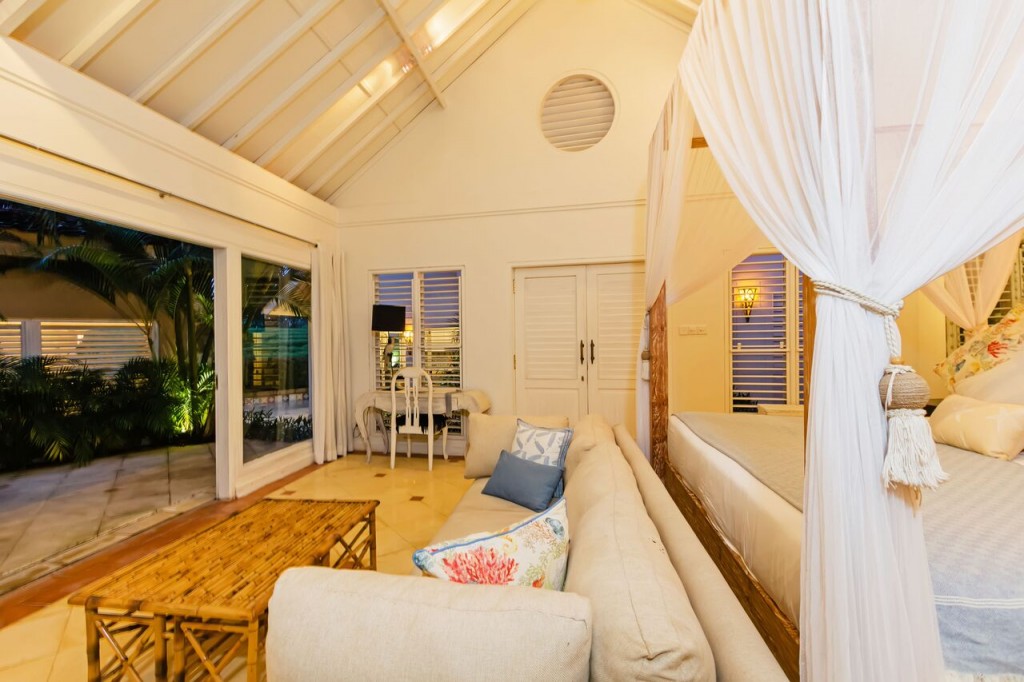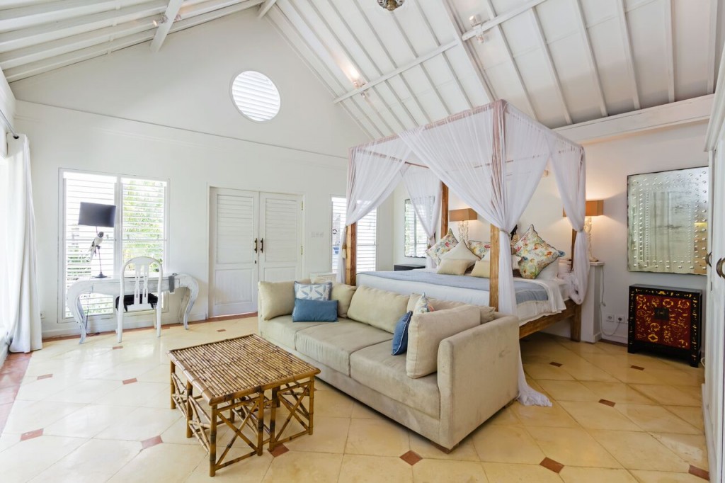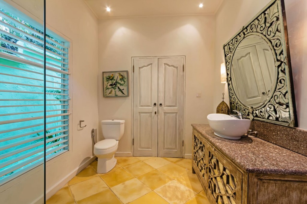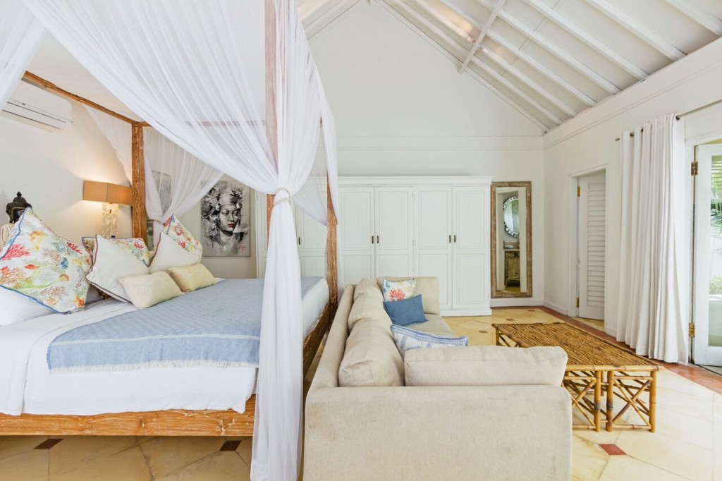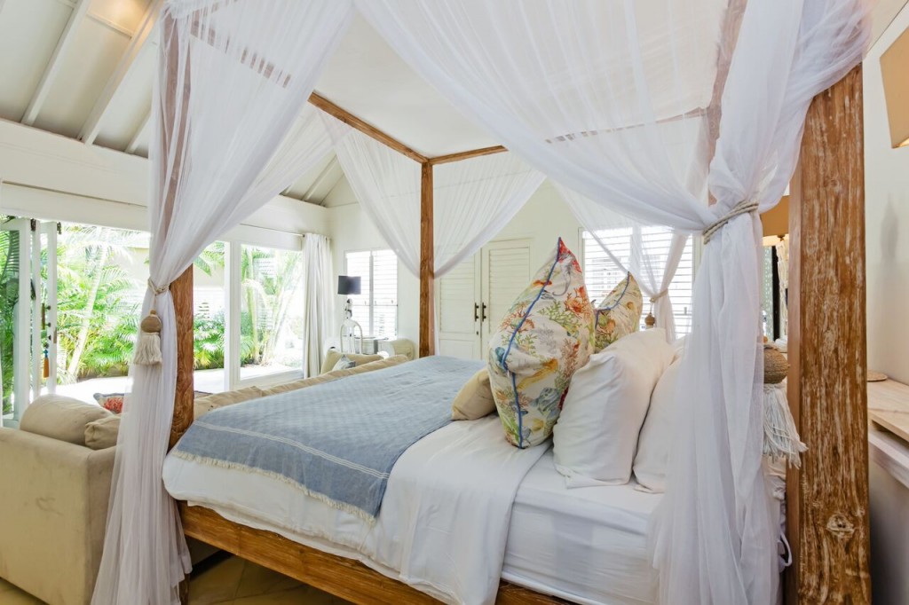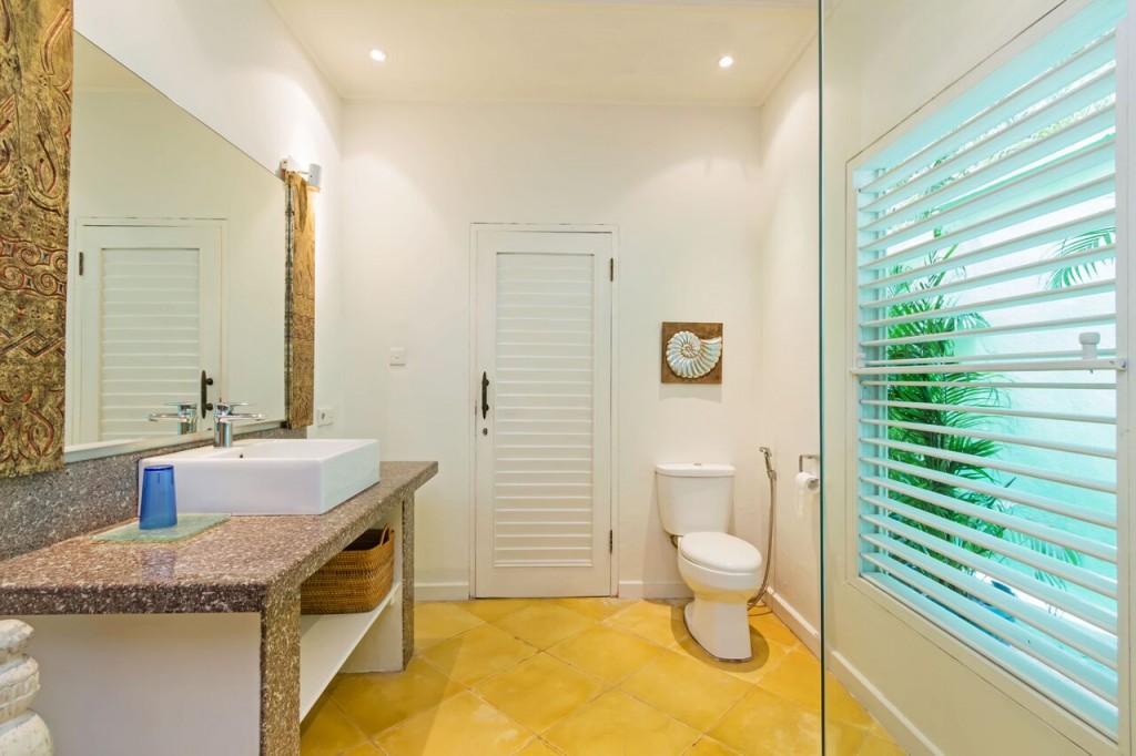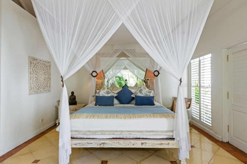 Each bedroom is thoughtfully designed with serene colors, cooling air conditioning, and ensuite bathrooms. Natural light fills the rooms, enhancing the villa’s soothing ambiance.