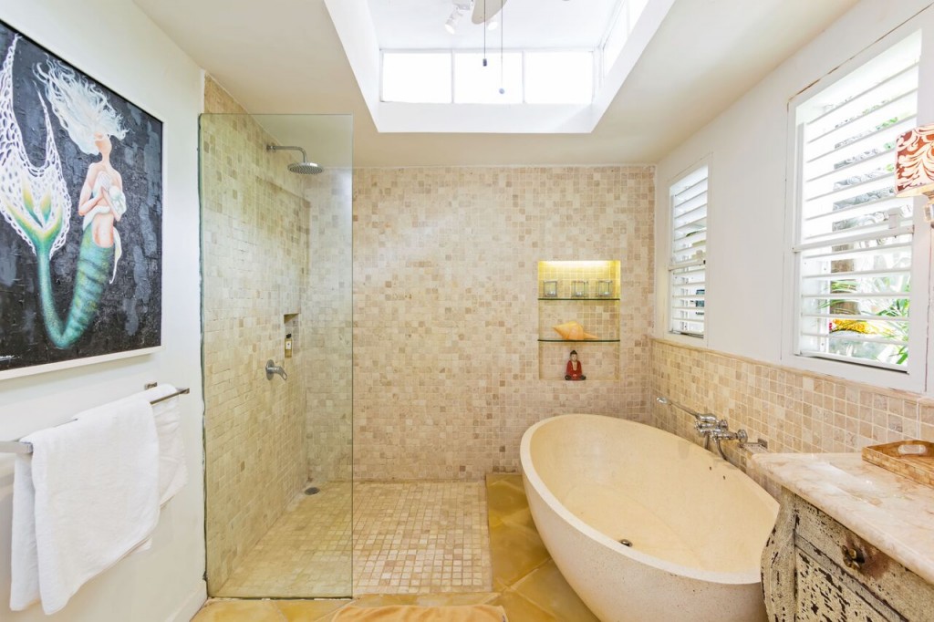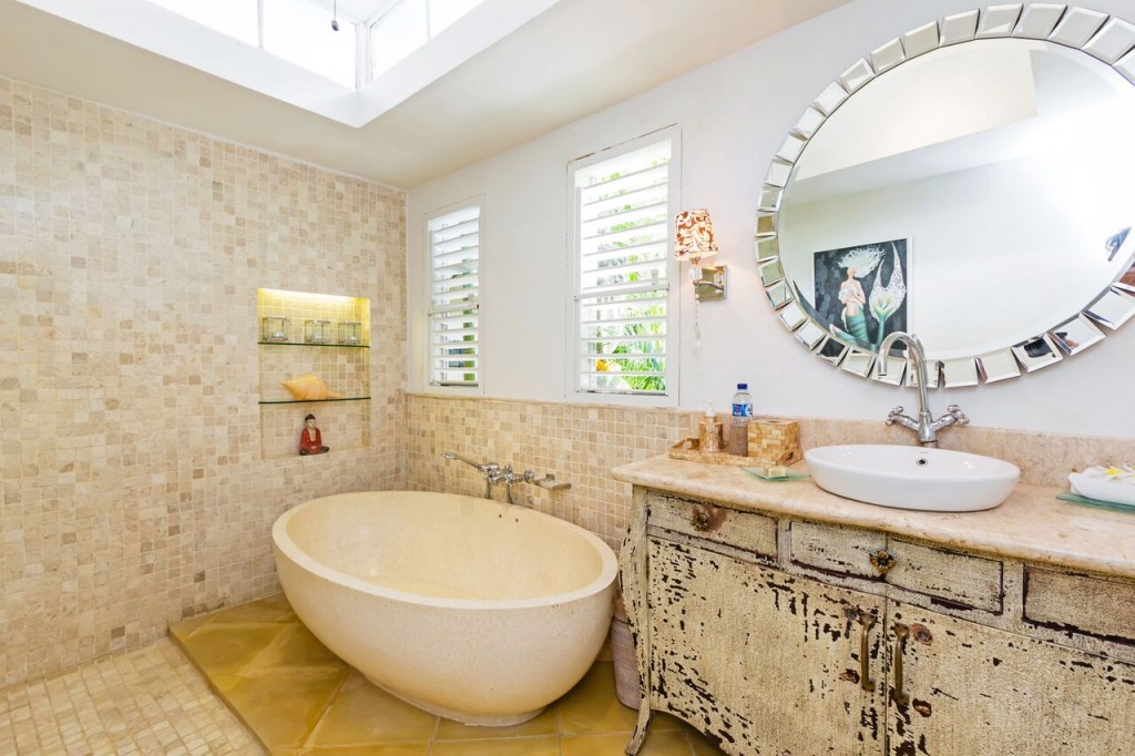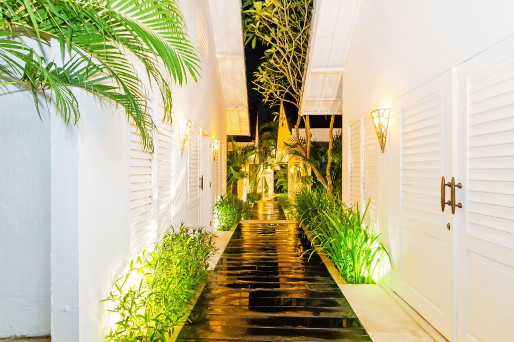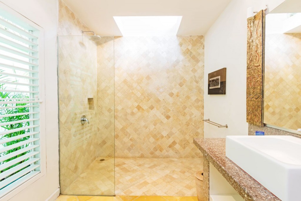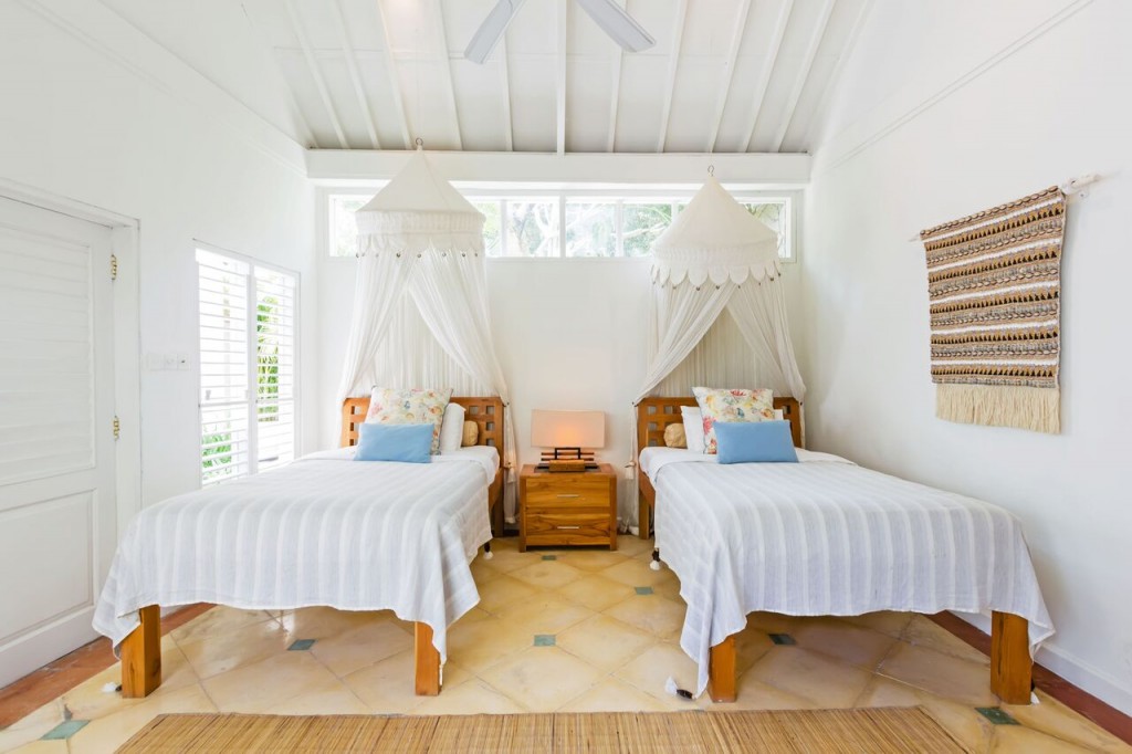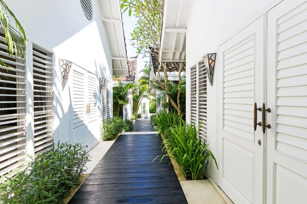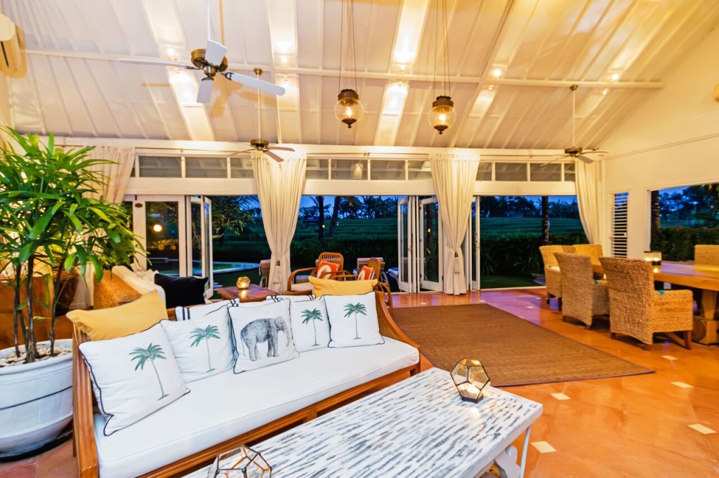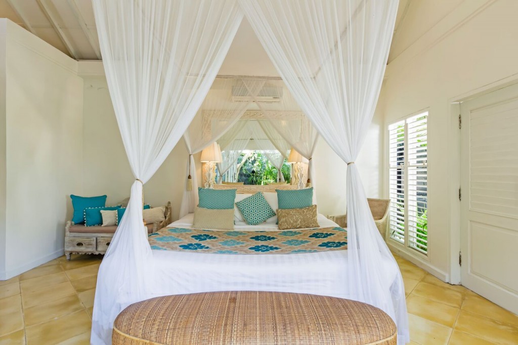 Each bedroom is thoughtfully designed with serene colors, cooling air conditioning, and ensuite bathrooms. Natural light fills the rooms, enhancing the villa’s soothing ambiance.