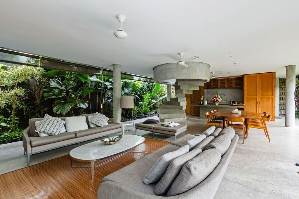 Minimalistic contemporary stunning design in sublime location 700 meters from beach. Full staff and private pool. Be spoilt for choice when dining or shopping. C99 is a Stylish two-story villa with amazing architectural features such as: ⍟A concrete spiral staircase ⍟Cantilevered second level Centred around sunny courtyard garden and 12.5m long private pool, the pavilion showcases the best of Bali. Its structure provides free flowing indoor/outdoor spaces – perfect for alfresco living