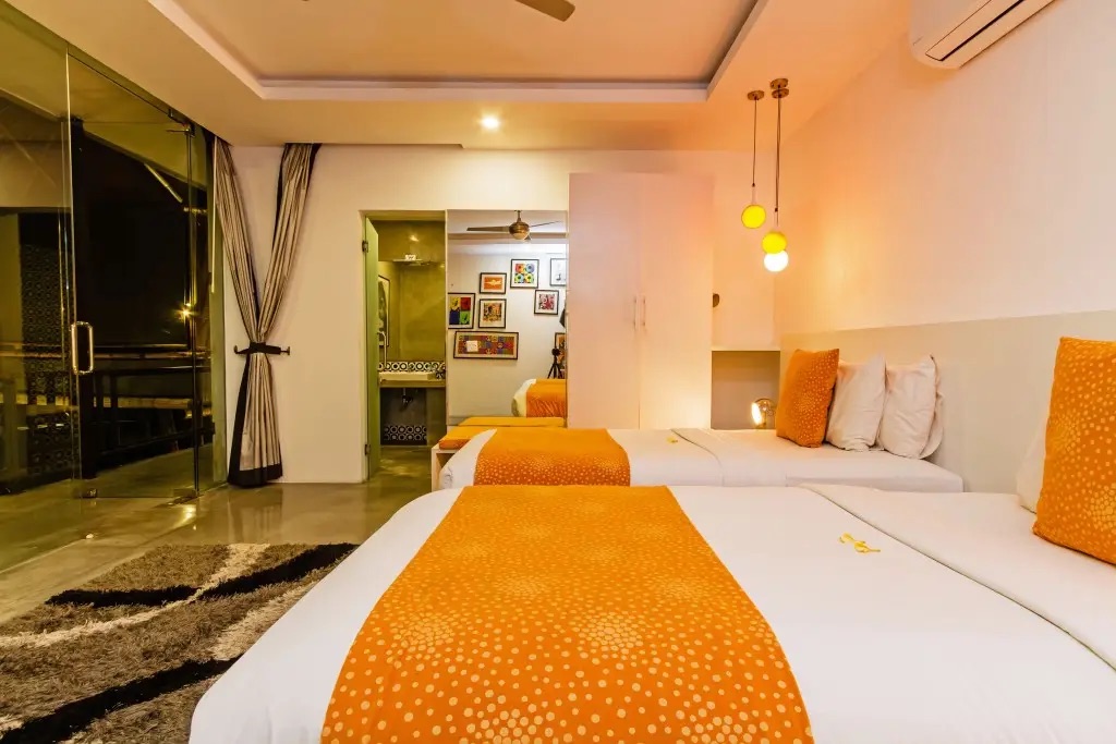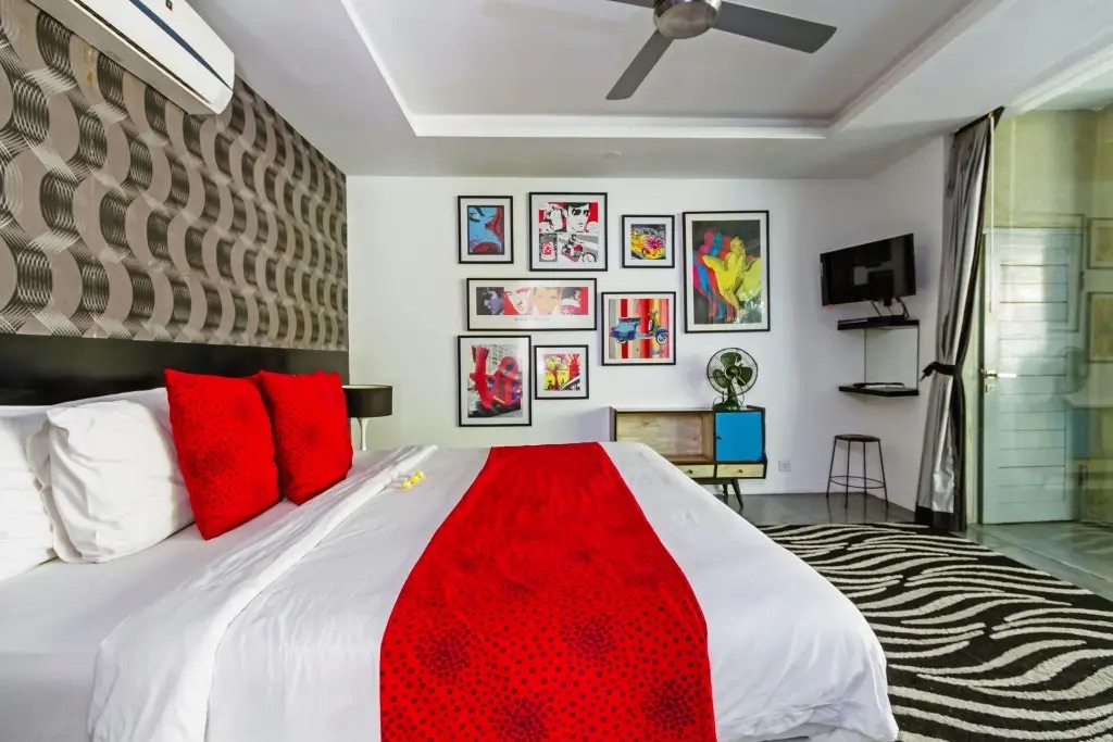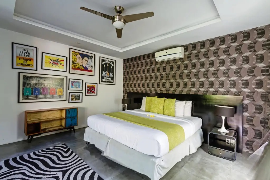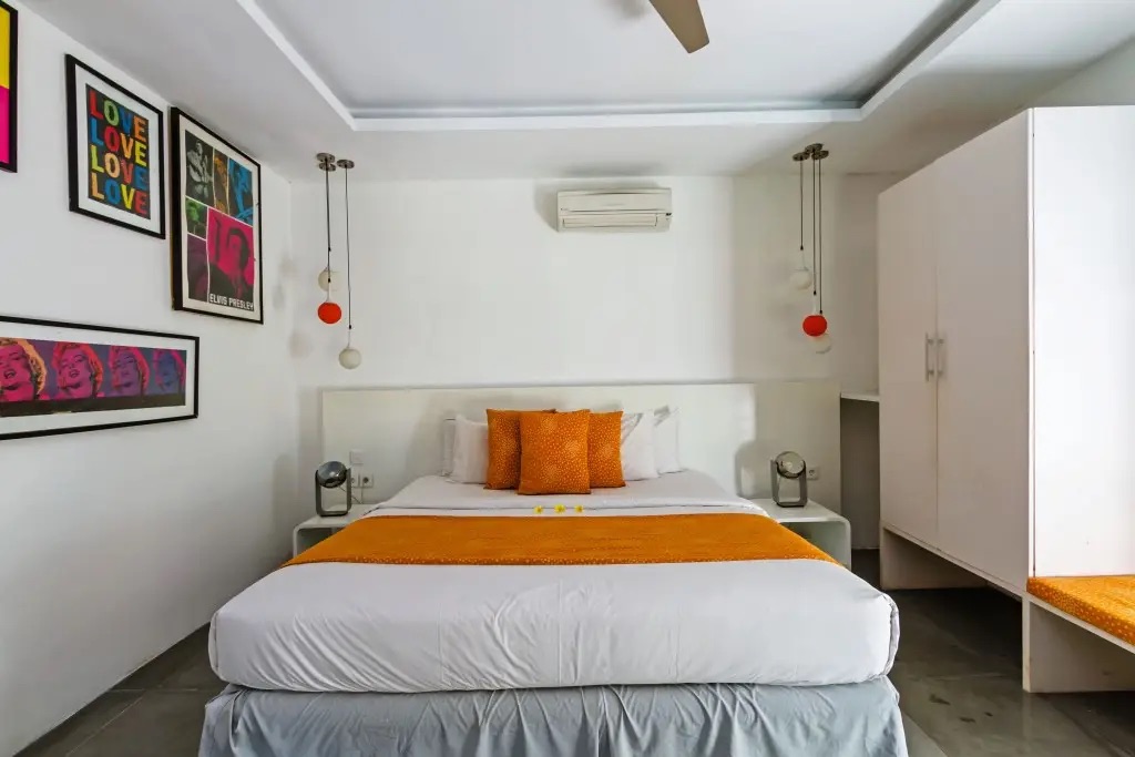 All bedrooms have recessed ceilings, large windows with block out curtains and they also feature separate air conditioners, fans, 40″ TV’s, wardrobes, funky lamps and pop art on the walls.