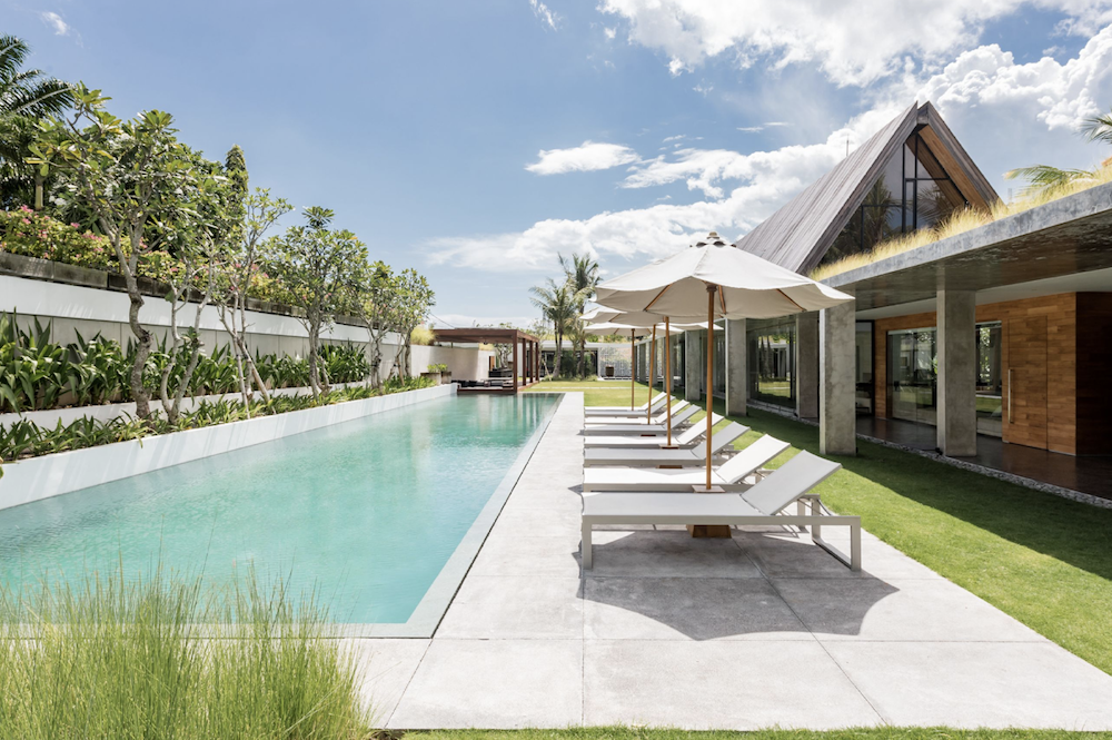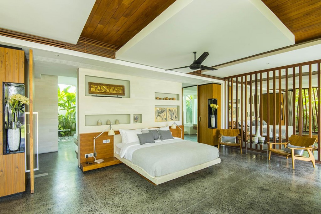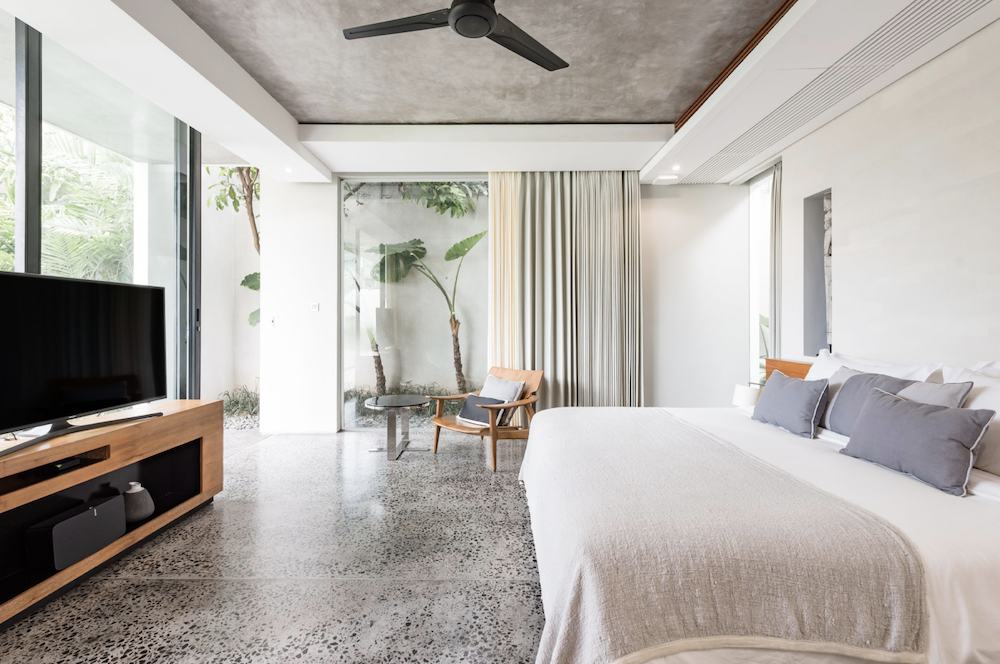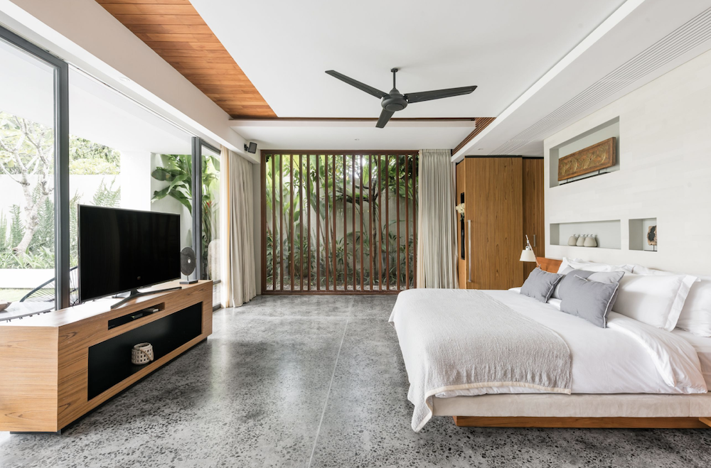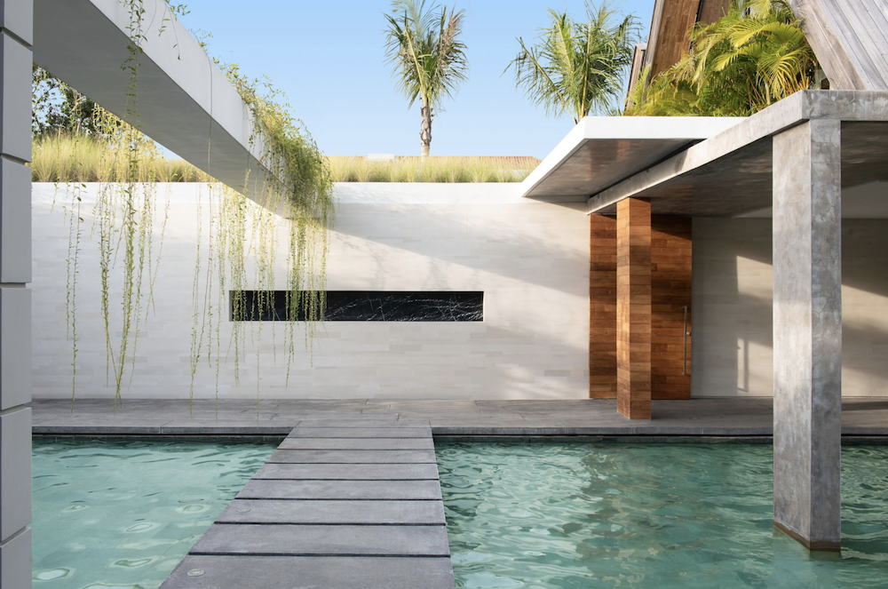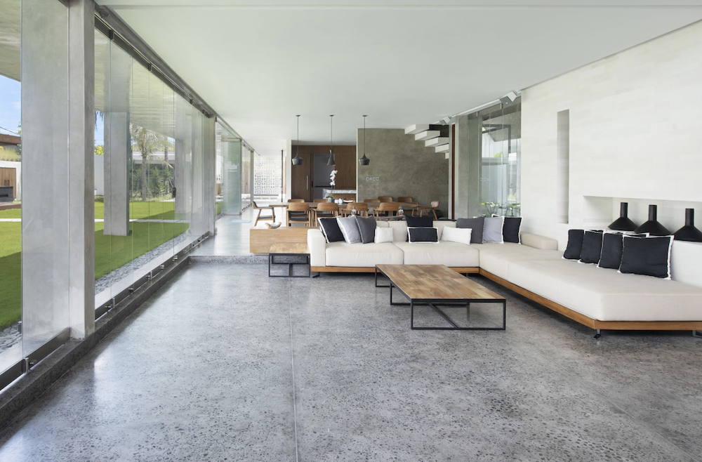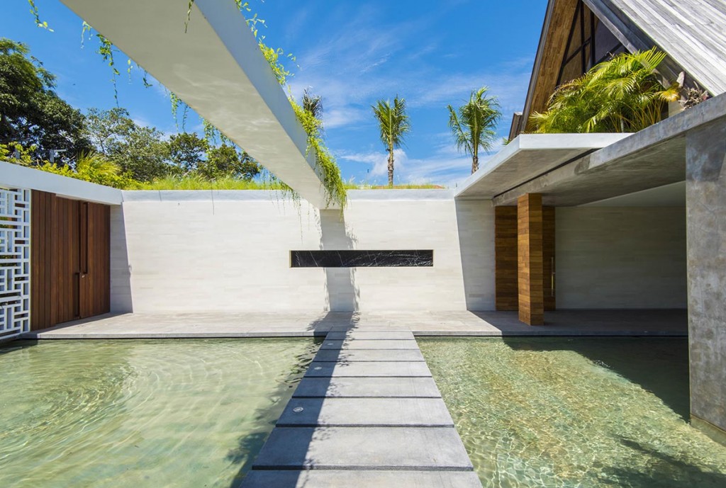 Keila Villa is an exclusive five-ensuite bedroom family friendly habitat of avant garde polished concrete ceilings walls and floors, glistening ponds and a spectacular 30-metre wall of glass that opens to large and luxuriant tropical gardens.