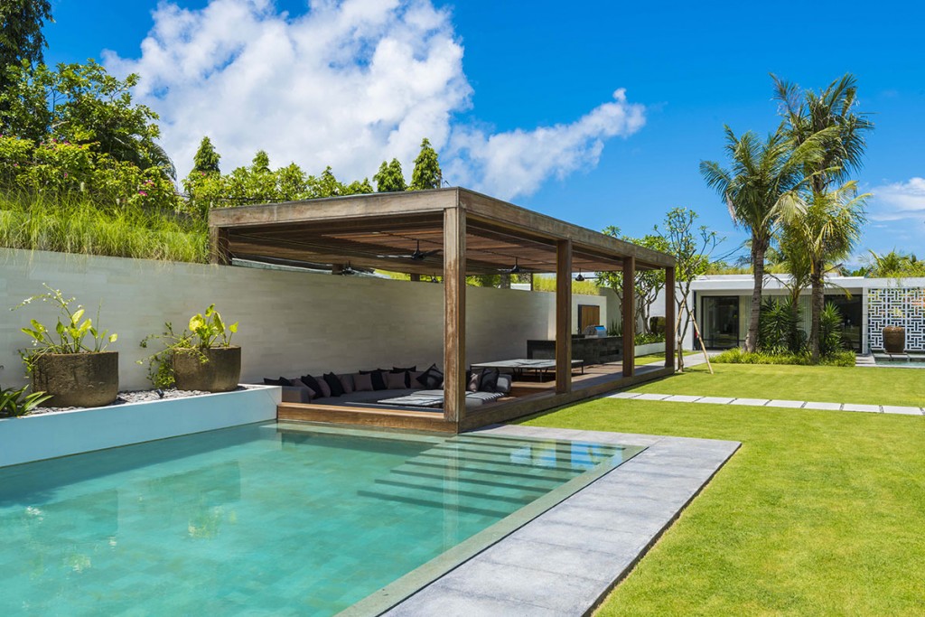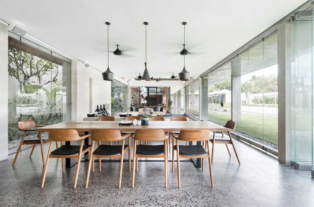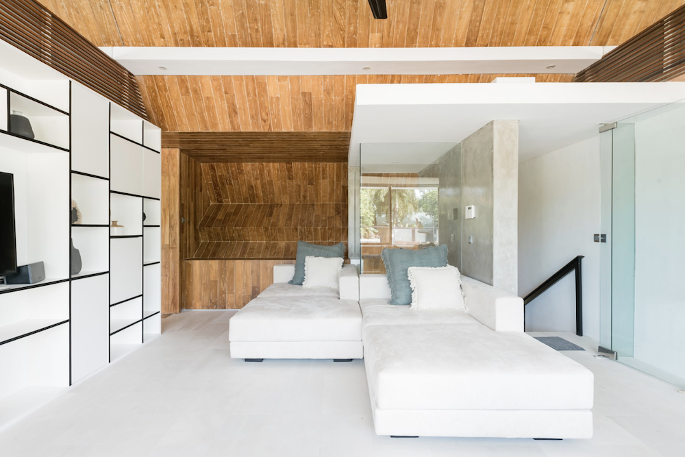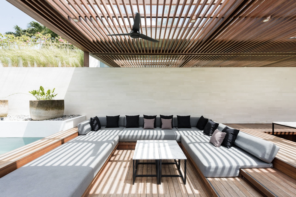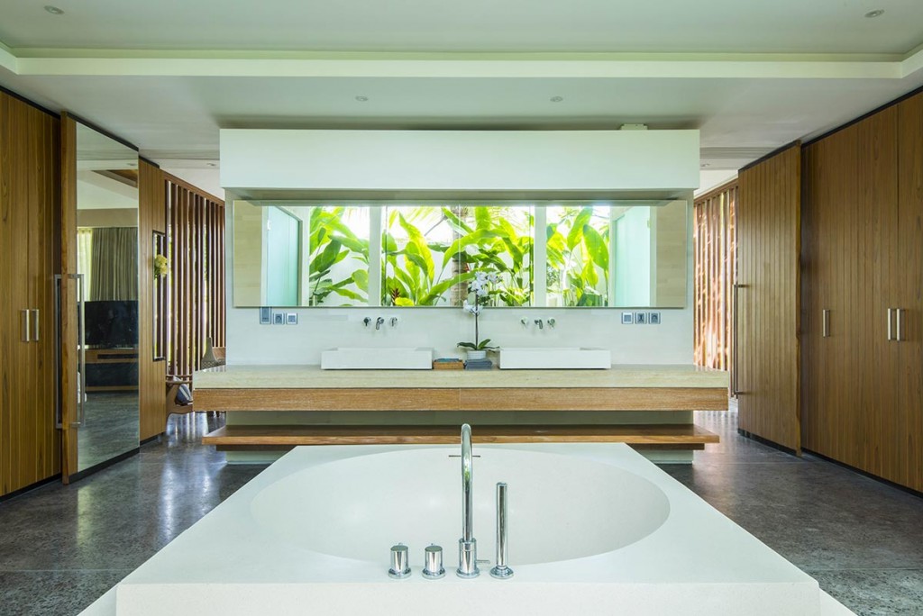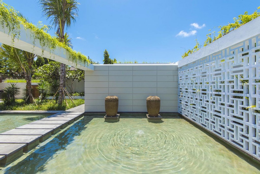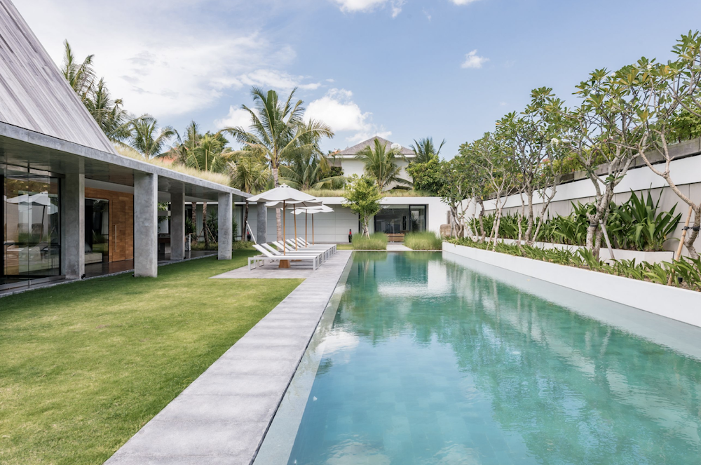 Keila Villa is an exclusive five-ensuite bedroom family friendly habitat of avant garde polished concrete ceilings walls and floors, glistening ponds and a spectacular 30-metre wall of glass that opens to large and luxuriant tropical gardens.