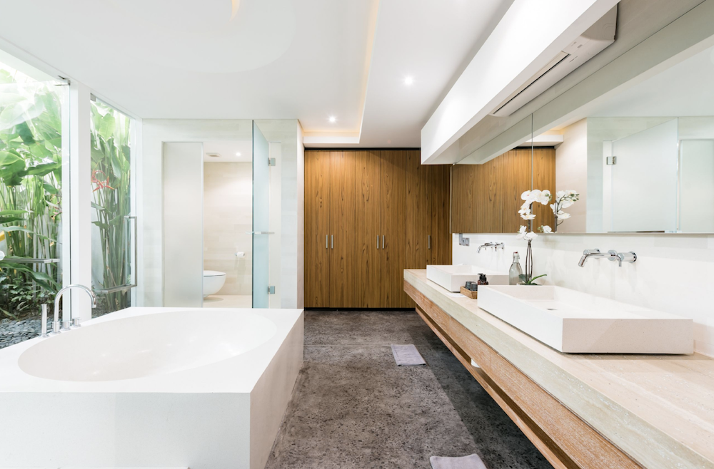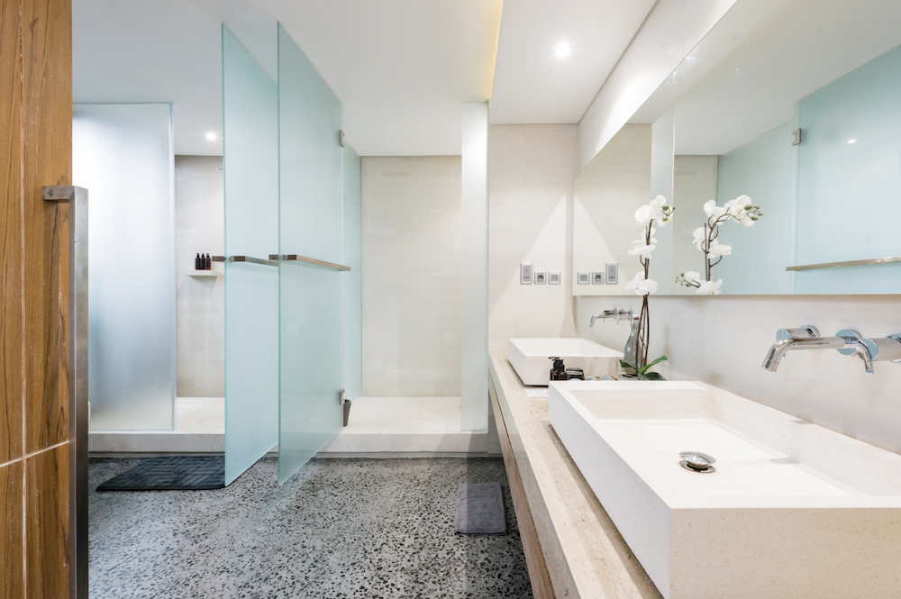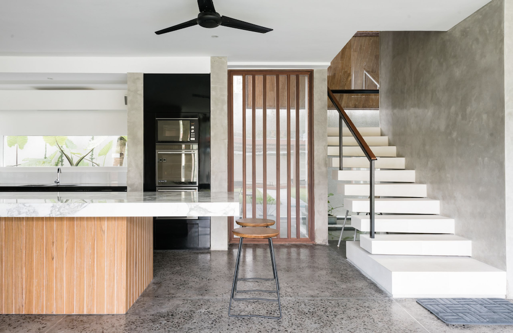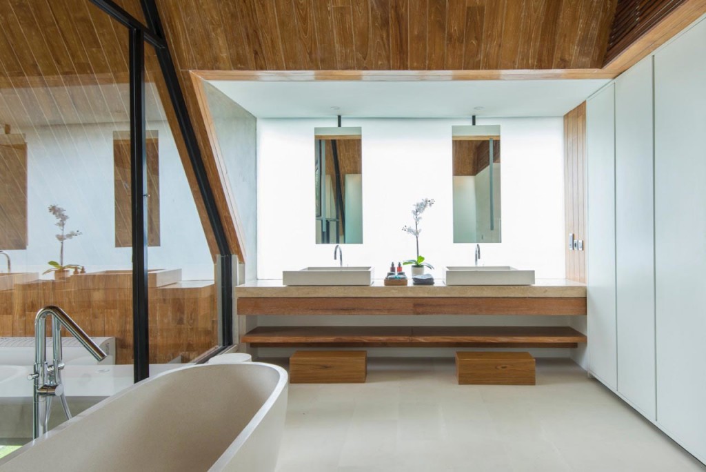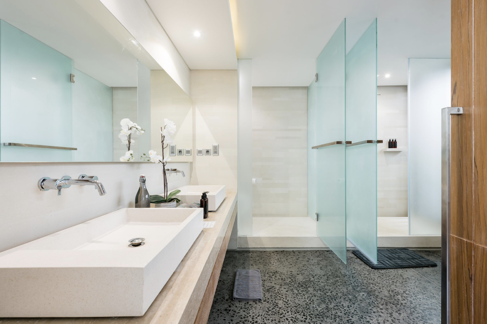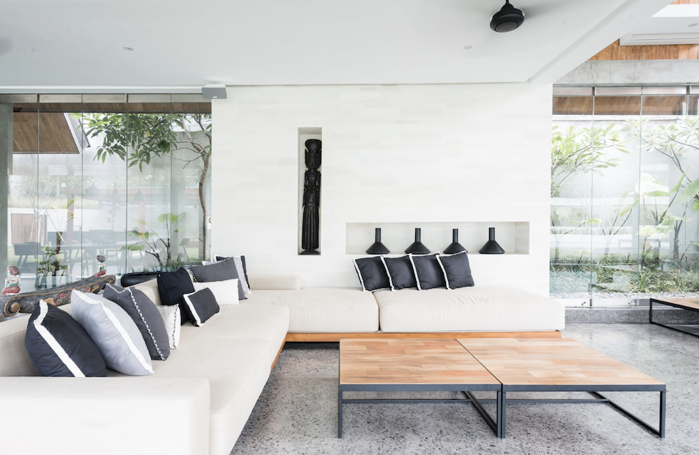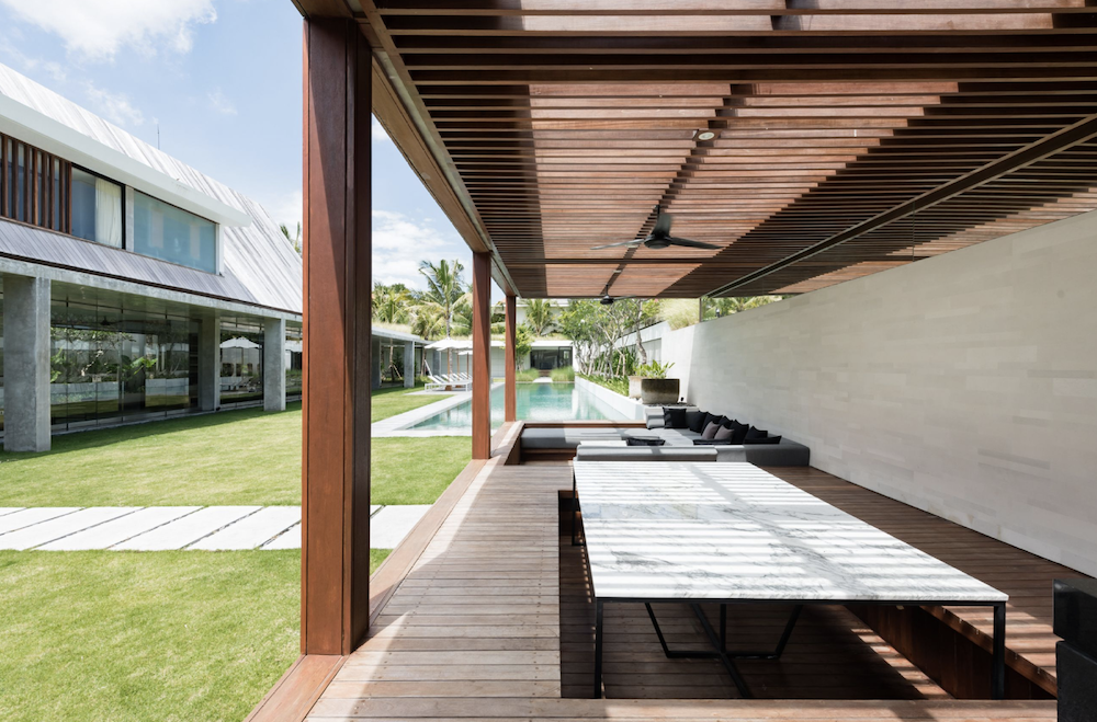 Keila Villa is an exclusive five-ensuite bedroom family friendly habitat of avant garde polished concrete ceilings walls and floors, glistening ponds and a spectacular 30-metre wall of glass that opens to large and luxuriant tropical gardens.