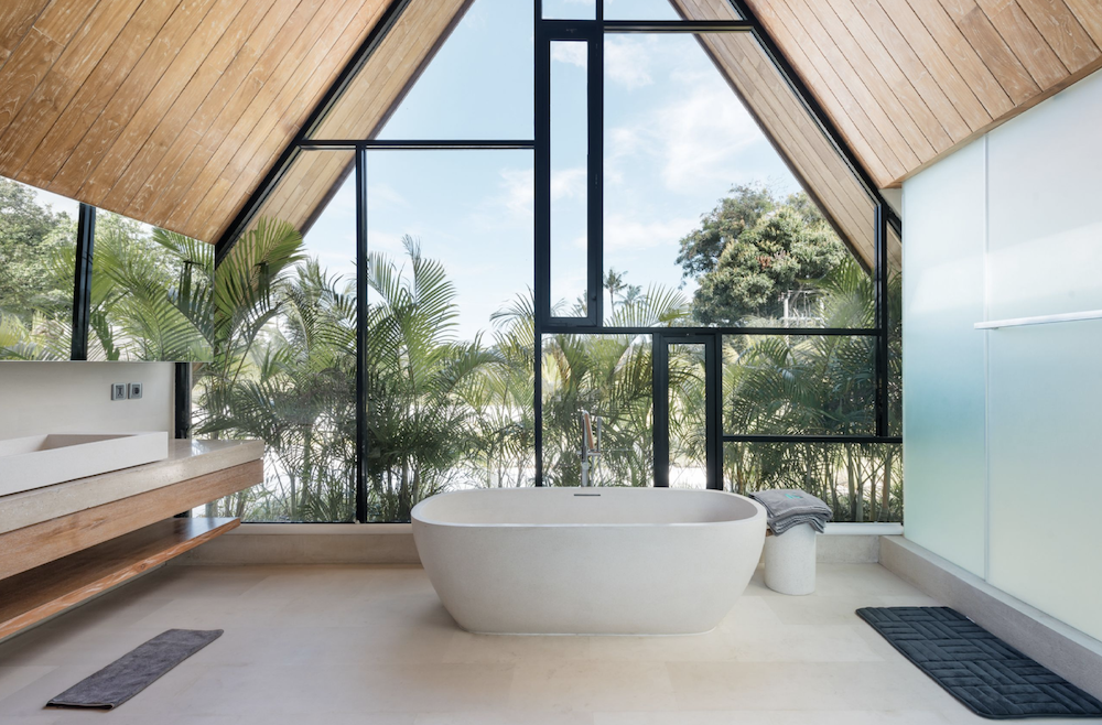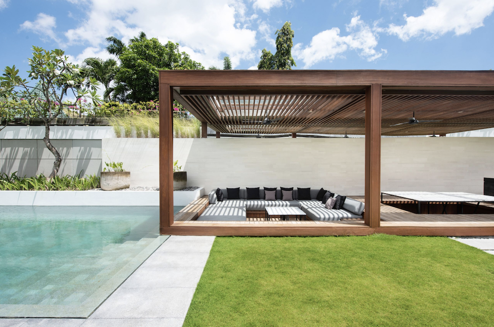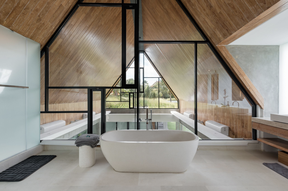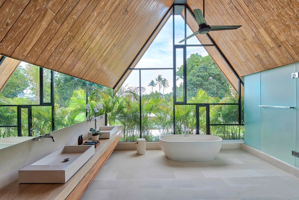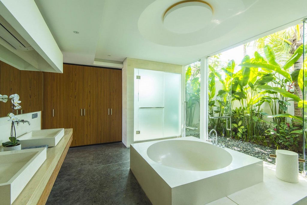 • 30-metre wall of glass that opens to large and luxuriant tropical gardens